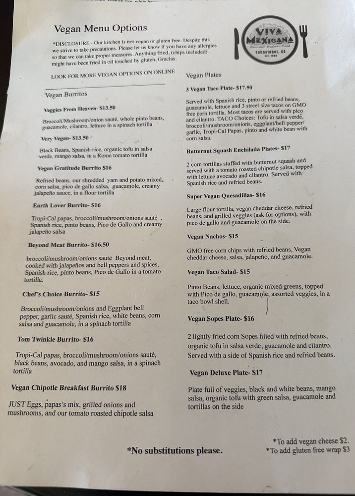 Welcome to Viva Mēxicana, a charming Mexican eatery nestled in Sebastopol, CA, where culinary passion meets a vibrant atmosphere. At this delightful spot, the menu offers an array of options that cater to various dietary preferences, ensuring that everyone finds something to love.